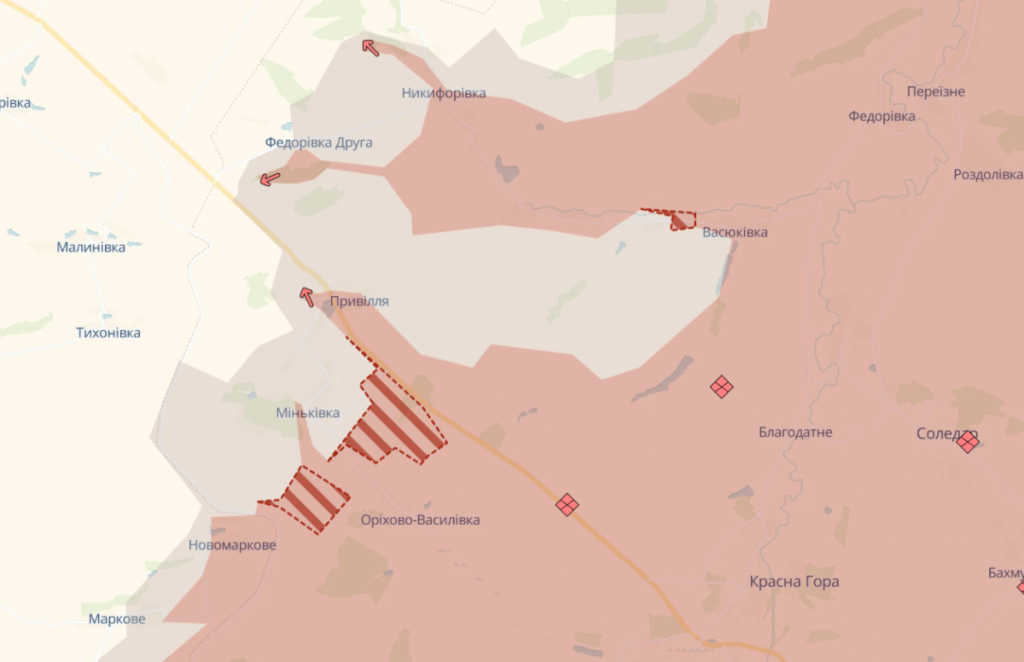 Войска рф продвинулись в районе н.п. Миньковка, Орехово-Васильевка и в Васюковке Донецкой области, рассказали аналитики проекта.