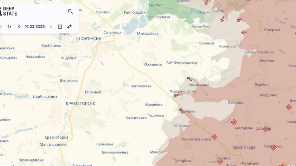Российская армия продолжает давление на украинские позиции на Славянском направлении и имела там продвижение. Об этом сообщает информационный ресурс DeepState на своей странице в Telegram-канале.