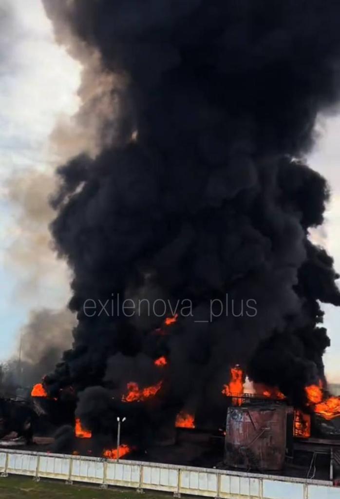 В сети обнародовали подробности атаки на нефтебазу в городе Лабинск Краснодарского края рф 16 марта. По предварительной информации, в результате удара на территории объекта уничтожена большая часть резервуарного парка. Об этом пишет мониторинговый Telegram-канал Exilenova+, сообщает Обозреватель.