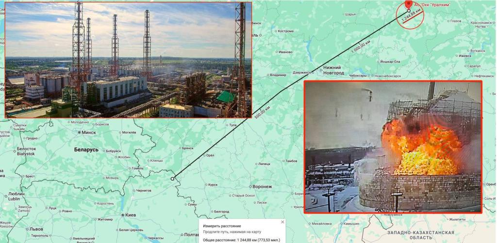 По информации канала, в результате точных попаданий разрушен уже второй цех по производству аммиака и выведен из строя газопровод, питающий предприятие. "Уралхим" — крупнейший в россии производитель аммиачной селитры, которая играет важную роль в цепочке производства взрывчатки для ВС рф.