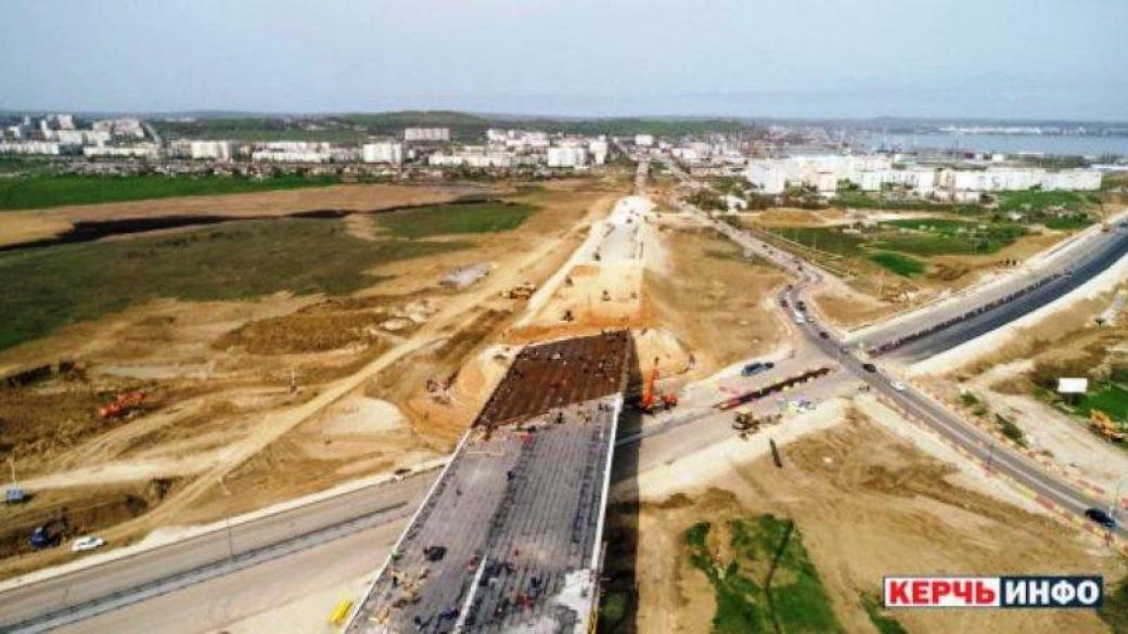 СМИ сообщают: «Со стороны пролива мы видим дорогу, по которой меньше чем через месяц поедут автомобили прямо на Керченский мост. Здесь устанавливают дорожные ограждения «.