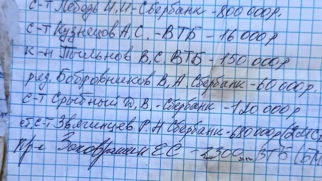 В селе под Черниговом нашли списки российских военнослужащих-должников банкам России с суммами их долгов по кредитам. Об этом пишет «Северная Брама».