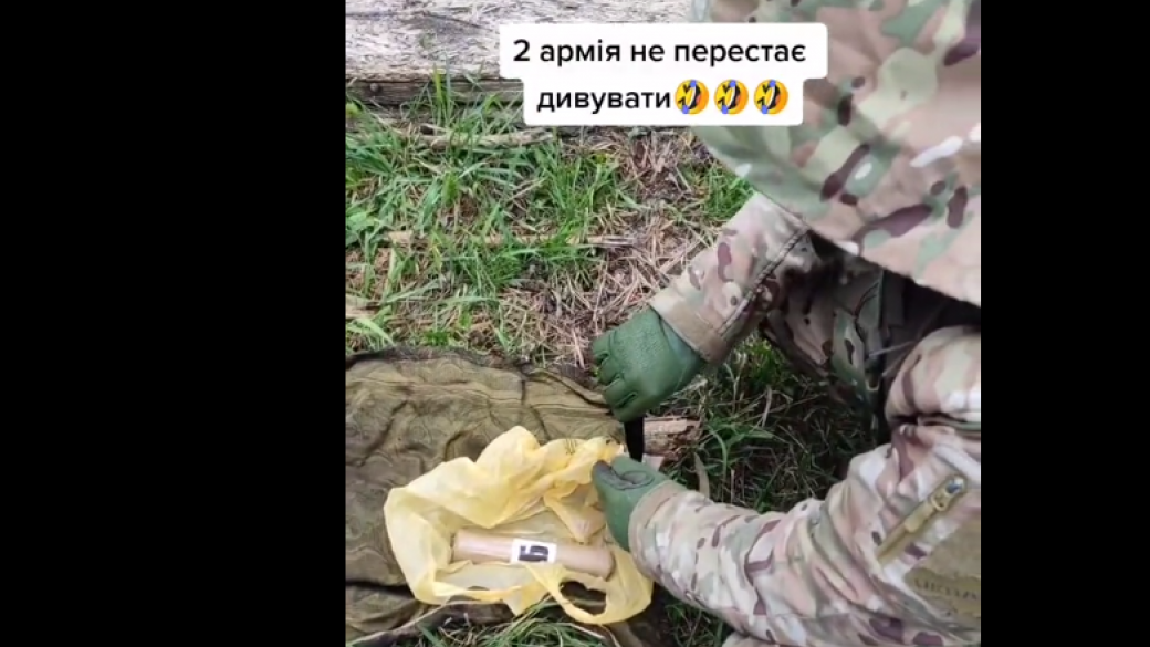 Украинские военные после побега российской армии обнаружили, что российские оккупанты были вооружены муляжами. Военные опубликовали видео, на котором показана поддельная 200-граммовая тротиловая шашка и ручная дымовая граната «РДГ-2Б» — так называемый «белый дым».