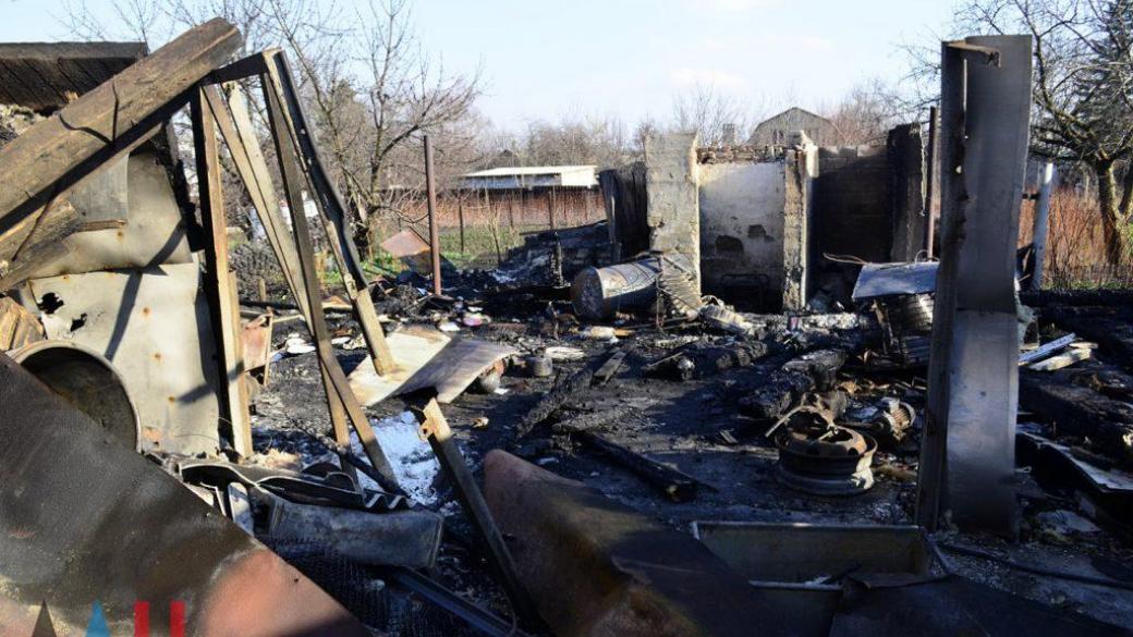В результате ночного обстрела сгорел жилой дом в селе Спартак, расположенного к северу от оккупированного Донецка.