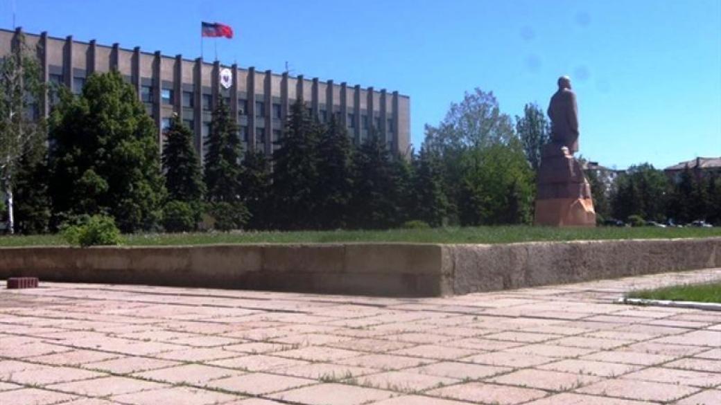 Он показал как выглядит днем ранее оживленная площадь возле горловской городской администрации.