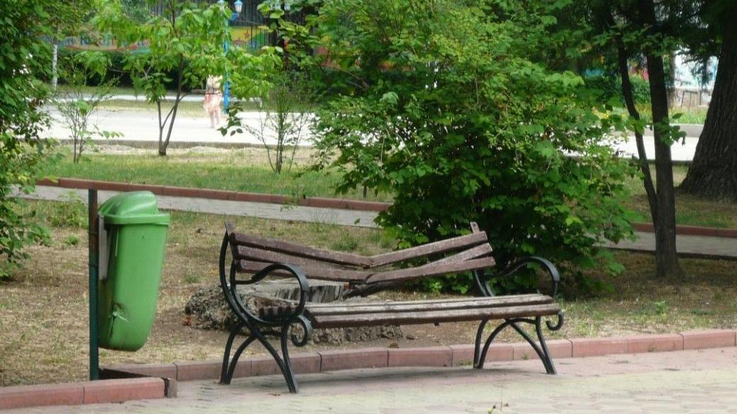 На одном из снимков запечатлено разрушающееся здание с надписью «Феодосия — туристическая жемчужина Крыма». Также, на фото запечатлена сломанная лавочка.