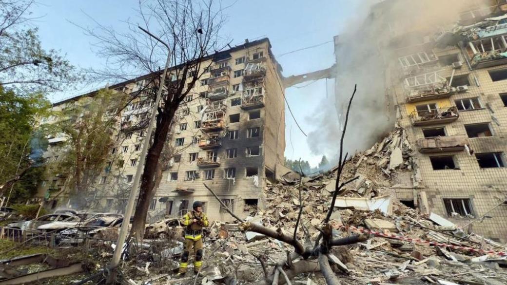 В Соломенском районе разбирают завалы в жилом 9-ти этажном доме, где обвалился весь подъезд. ракета прошла все 9 этажей до подвала. Количество погибших может возрасти.