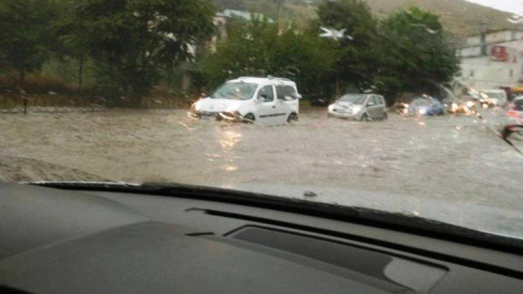 На данный момент на проезжей части воды собралось столько, что некоторые автомобили наполовину ушли под воду.