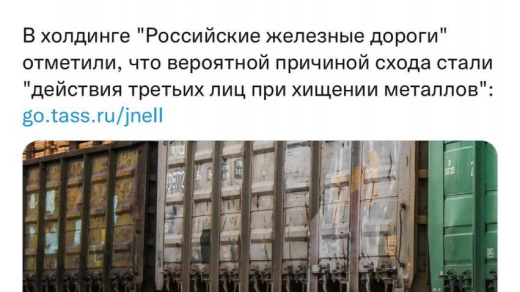 "В России уже идёт настоящая рельсовая война, сформировались партизанские отряды, которые разбирают рельсы по всей стране и пускают под откос составы, чтобы остановить позорную войну против украинского народа".