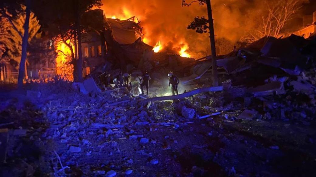 Местные паблики пишут, что ракетный удар россияне нанесли по общежитию, здание которого разрушено до основания.