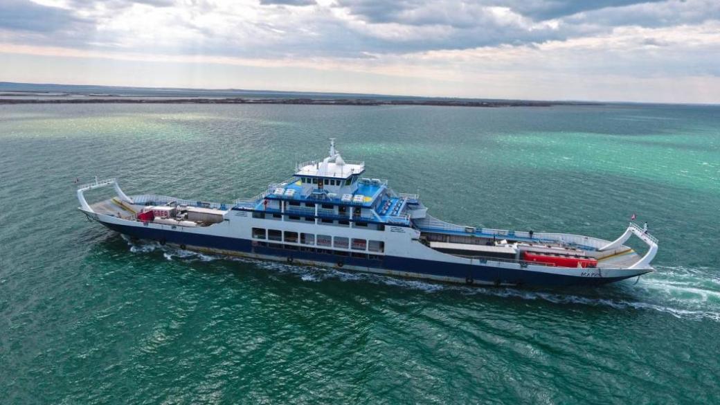 Данный паром может вмещать более 130 пассажиров и различные грузы.