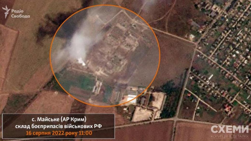 Американская компания Planet опубликовала спутниковые снимки с последствиями взрывов на российских складах боеприпасов в селе Майское в Джанкойском районе аннексированного Крыма.