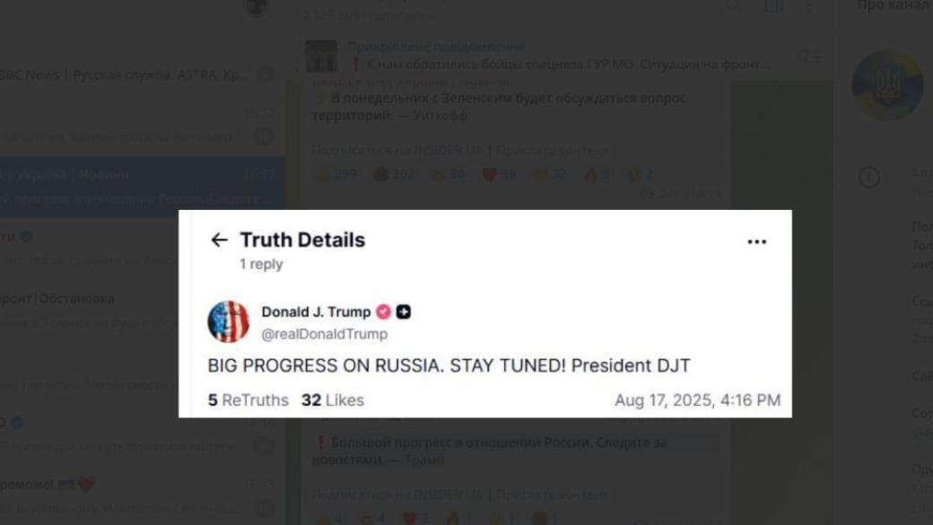 Президент США Дональд Трамп на своей странице в соцсети заявил о "большом прогрессе в отношении россии".