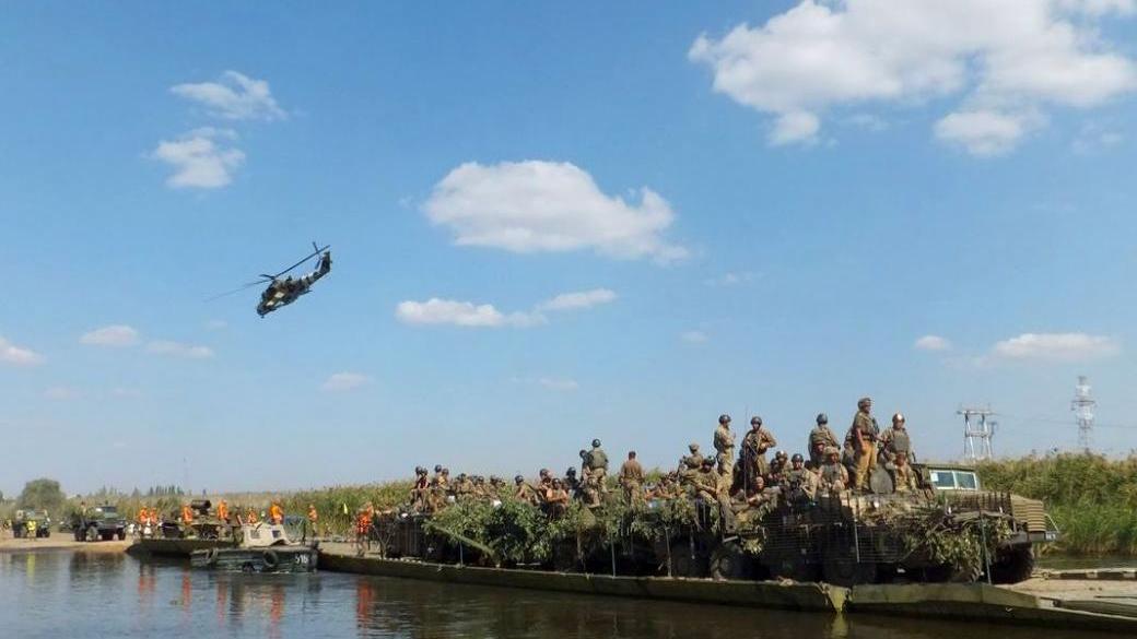 «Десантники тренировались во взаимодействии с подразделениями армейской авиации. В частности, вертолеты Ми-24 прикрывали движение колонн с воздуха, а с Ми-8 осуществлялось безпарашутне десантирования штурмовых групп с помощью комплекса съемного оборудования „Адаптер-М1“», — уточнили в украинском силовом ведомстве.