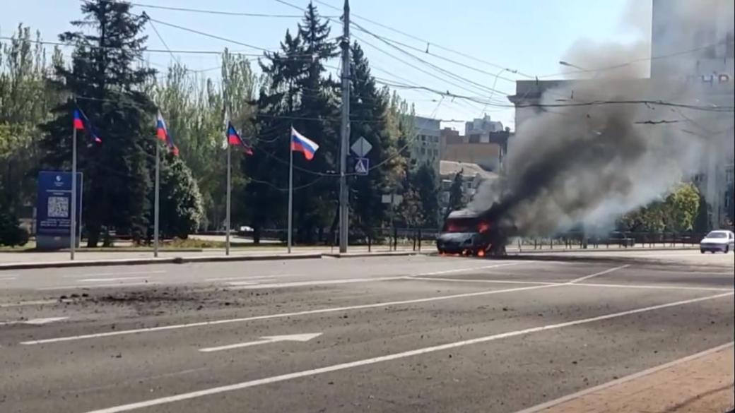 Во время обстрела Донецка пострадал автобус с пассажирами. Есть раненые