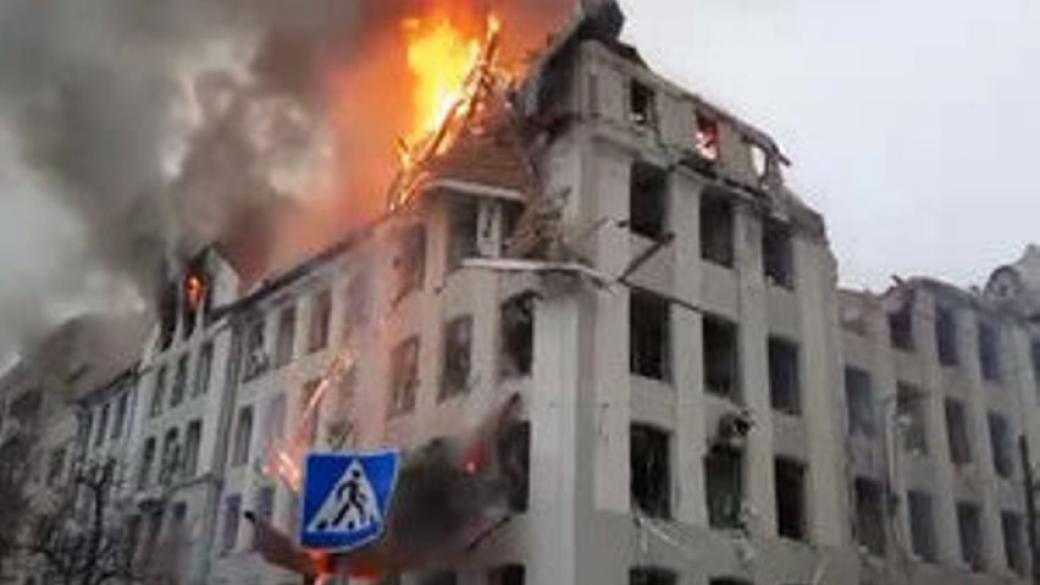 Харьков: Минувшей ночью, около 0:30, враг нанес ракетный удар по г. Харьков. Зафиксировано попадание 4 управляемых ракет ЗРК С300 по зданию гражданского предприятия. Произошел пожар.