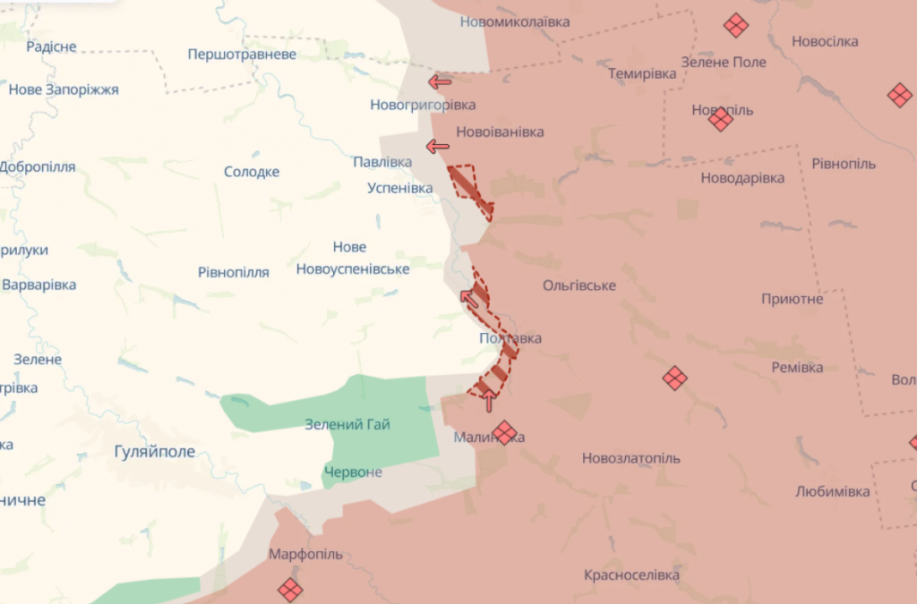 Зафиксировано продвижение россиян в селе Полтавка, а также вблизи сел Новоивановка и Малиновка.