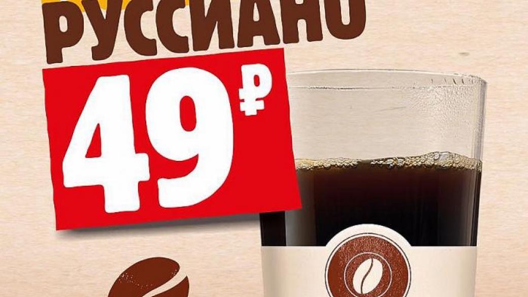 В пресс-службе сети сообщили: «Уже сегодня в части ресторанов появился кофе «руссиано» по демократичной цене 49 рублей «.