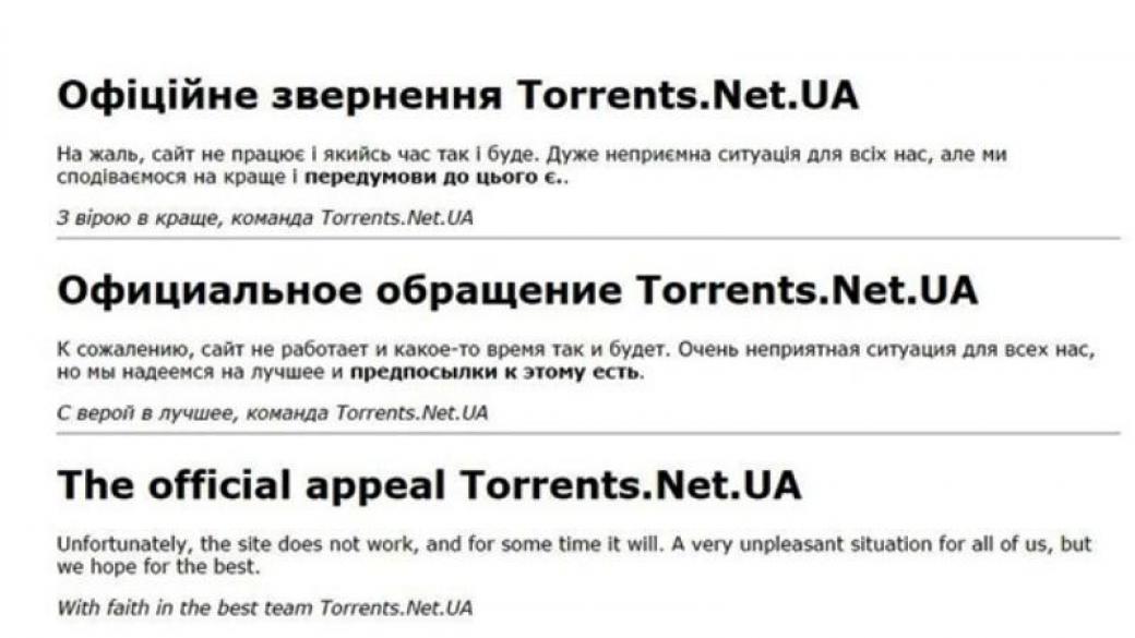 В Украине прекратил работу один из самых популярных торрент-трекеров.