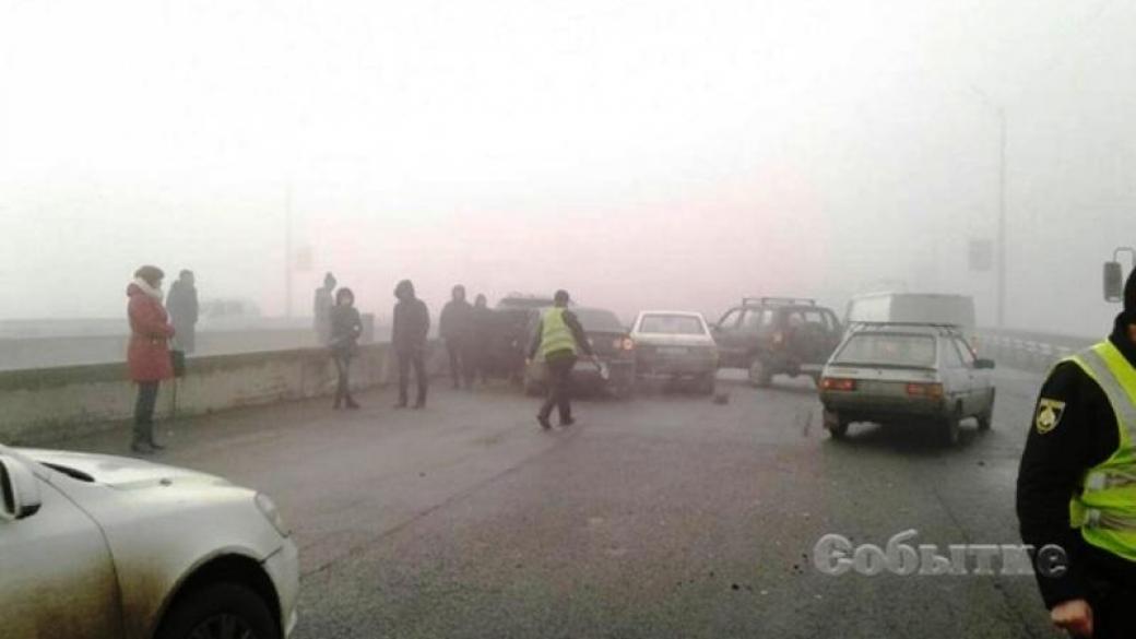 Сегодня утром в Каменском Днепропетровской области на мосту через Днепр произошло масштабное ДТП — столкнулись 10 автомобилей.