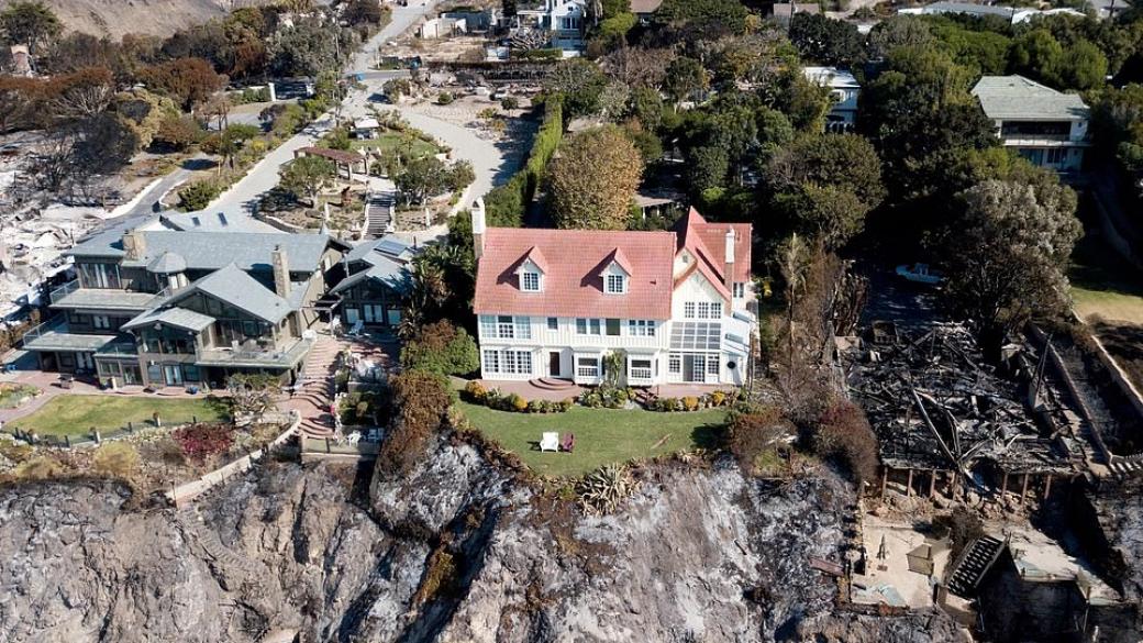 Огонь не затронул особняки актеров в Малибу. Большая часть земли вокруг дома Хопкинса была выжжена до хрустящей корочки, вокруг абсолютная разруха, в тоже время дом актера остался нетронутым.