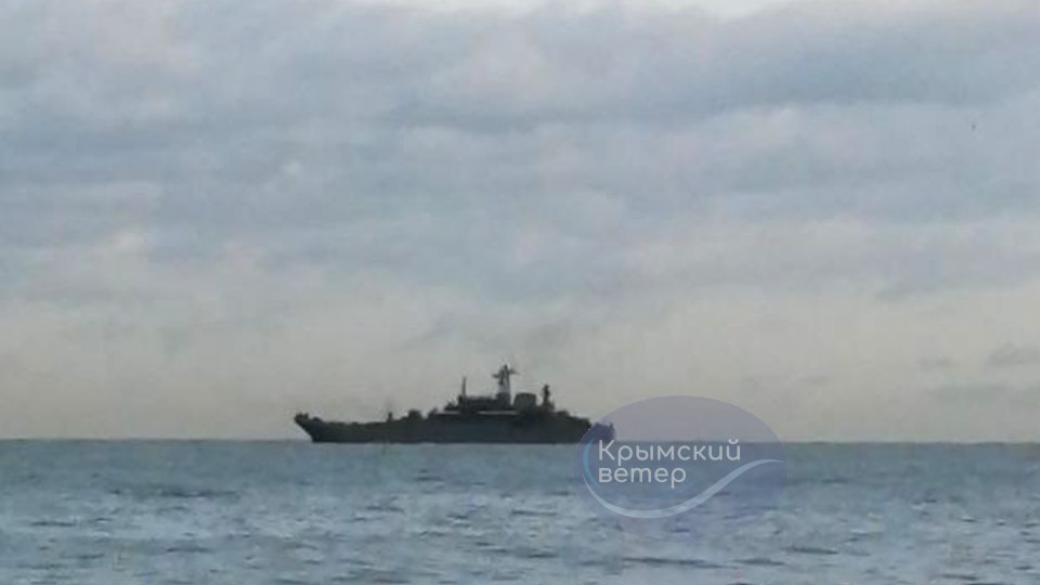Также в сети публикуют фото дыма в небе и сообщается, что оккупанты вывели из Севастополя в море сразу несколько своих своих кораблей Среди них один БДК проекта 775 и один тральщик.