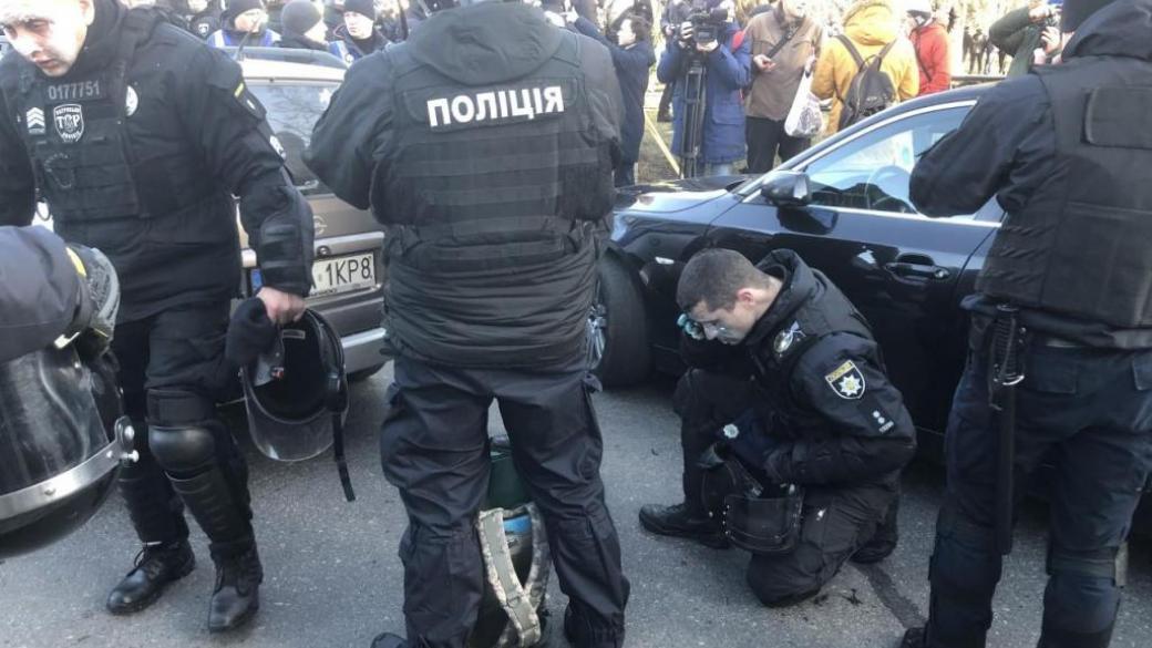 Ситуация обострилась из-за того, что правоохранители начали демонтировать палатки, которые успели установить протестующие на проезжей части улицы Грушевского. В силовиков полетели камни и брусчатка, а также радикально настроенные участники акции начали наносить удары по полицейским длинными металлическими палками.