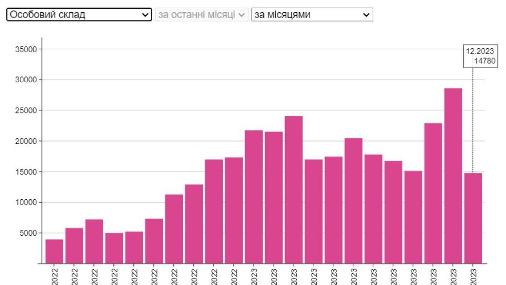 За первую половину декабря потери российских оккупационных войск (РОВ) составили 14 780, что сопоставимо с темпами и объёмами потерь ноября, когда был установлен абсолютный рекорд потерь РОВ - 28 550.