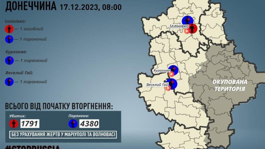 Всего с начала полномасштабного вторжения в Донецкой области россия убила 1791 человека и ранила 4380.