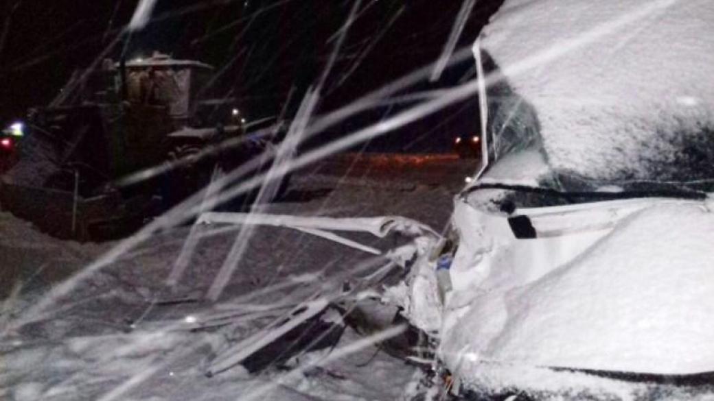 В Сумской области пассажирский микроавтобус столкнулся с трактором, который чистил дорогу от снега.