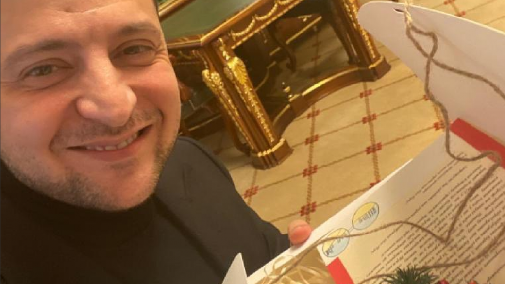Президент Украины Владимир Зеленский в своем канале в Telegram сообщил, что получил подарок от детей прифронтового поселка Новгородское Донецкой области.