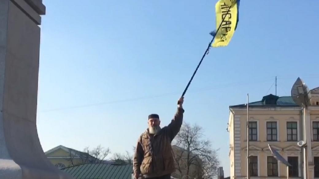 На украинском флаге можно было разглядеть надпись «Бахчисарай».