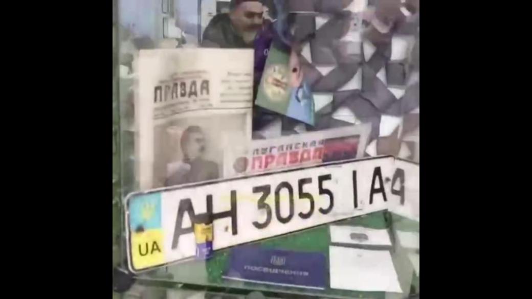 Российские мародеры не постеснялись показать украденные номера автомобиля, зарегистрированного в Мариуполе.