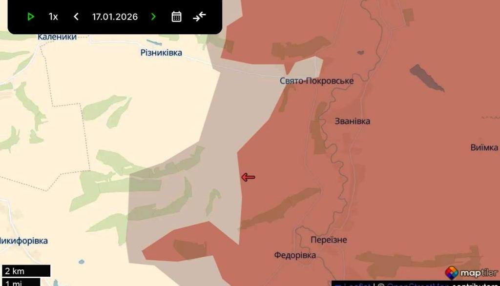 На севере Донецкой области, в пределах Славянского направления, на юго-западе от оккупированного Северска, россияне продвинулись вблизи сел Свято-Покровское и Федоровка. Об этом сообщил украинский информационный ресурс DeepState.