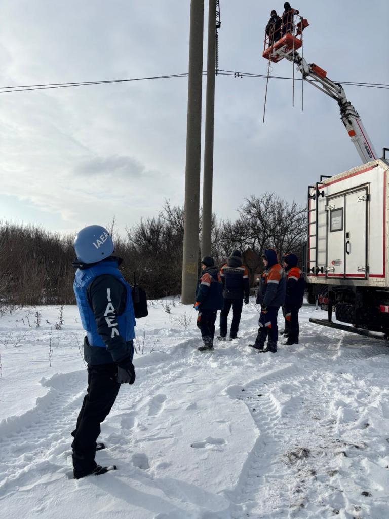 Ремонт линии электропередач осуществляет украинская команда специалистов. Представители МАГАТЭ находятся на месте и контролируют ход работ.