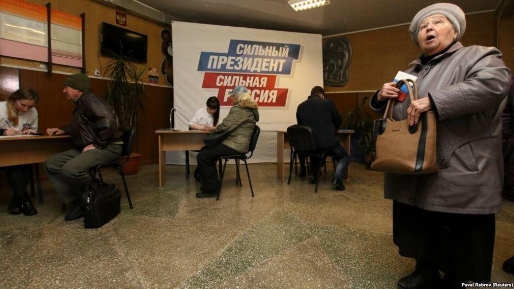 В аннексированном Крыму российская полиция получила звонки о минировании шести участков на незаконных выборах президента России.