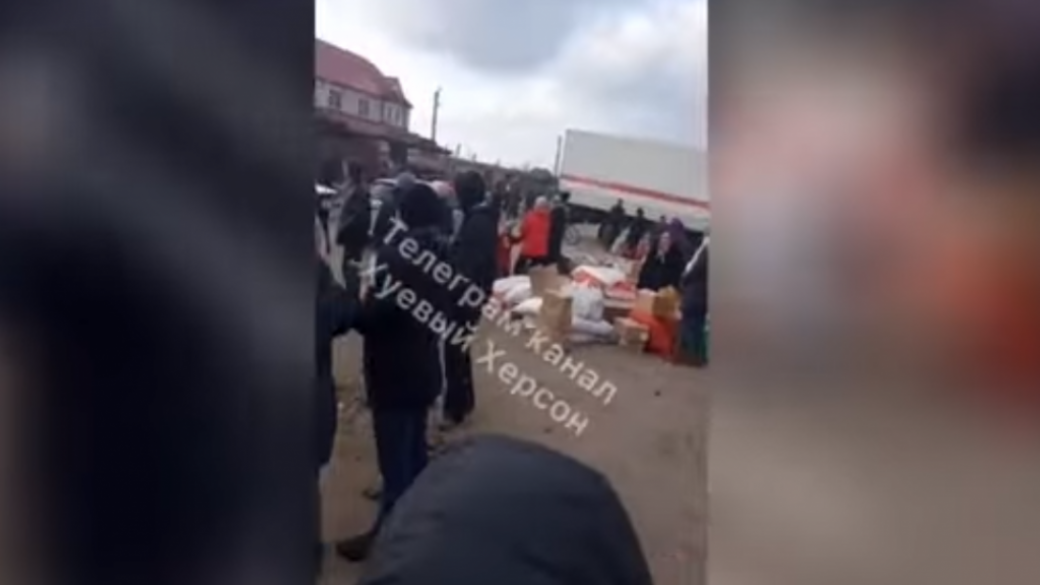 По данным ресурса, россияне привезли в поселок «гуманитарную помощь» и некоторые из местных жителей решили ею воспользоваться, но их окружили десятки человек и стали высмеивать, скандируя: «Голодные!».