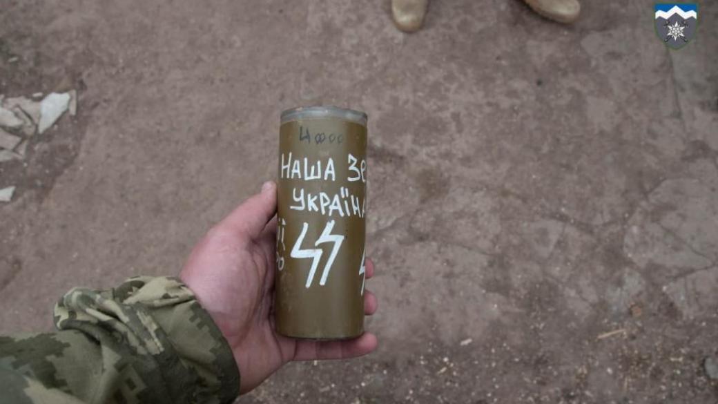 «И вот представьте себе, что кто-то из местных после взрыва находит эту железяку, и читает на ней: „Наша земля Украины, слава нации, смерть врагам“. Еще знак СС», — возмущен корреспондент.