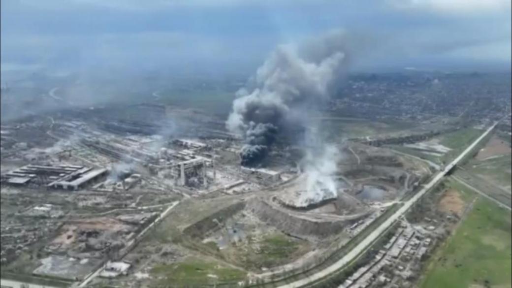 В сеть попало видео обстрела Мариупольской «Азовстали» сверхмощными бомбами.