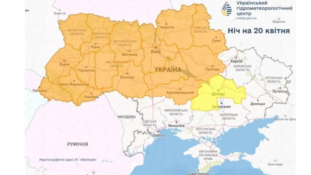 По информации украинских синоптиков, в течение следующих двух дней – 19-20 апреля — значительно похолодает. В некоторых областях объявлен I уровень опасности (желтый), а в некоторых — II уровень опасности (оранжевый).
