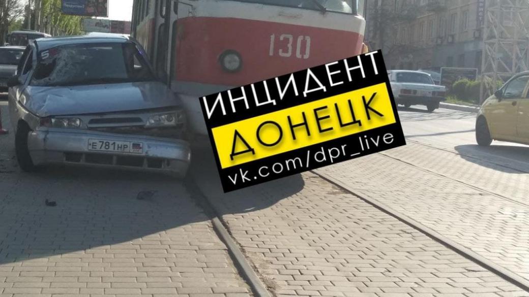 В центре Донецка из-за столкновения авто с трамваем приостановлено движение транспорта