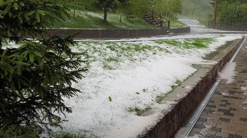 Об этом сообщают местные жители и в качестве доказательства выкладывают соответсвующие фото. Они отмечают, что перед необычным погодным явлением резко упала температура. После этого пошел дождь, сменившийся мокрым снегом и градом, что стало полной неожиданностью.