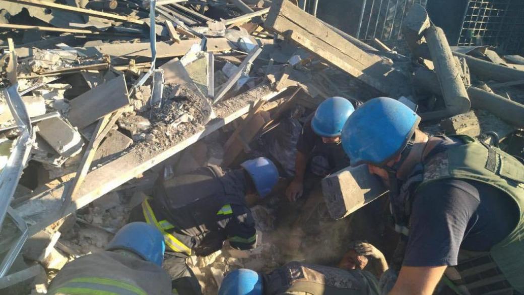 Снаряд попал в двухэтажное здание, в котором находились люди.