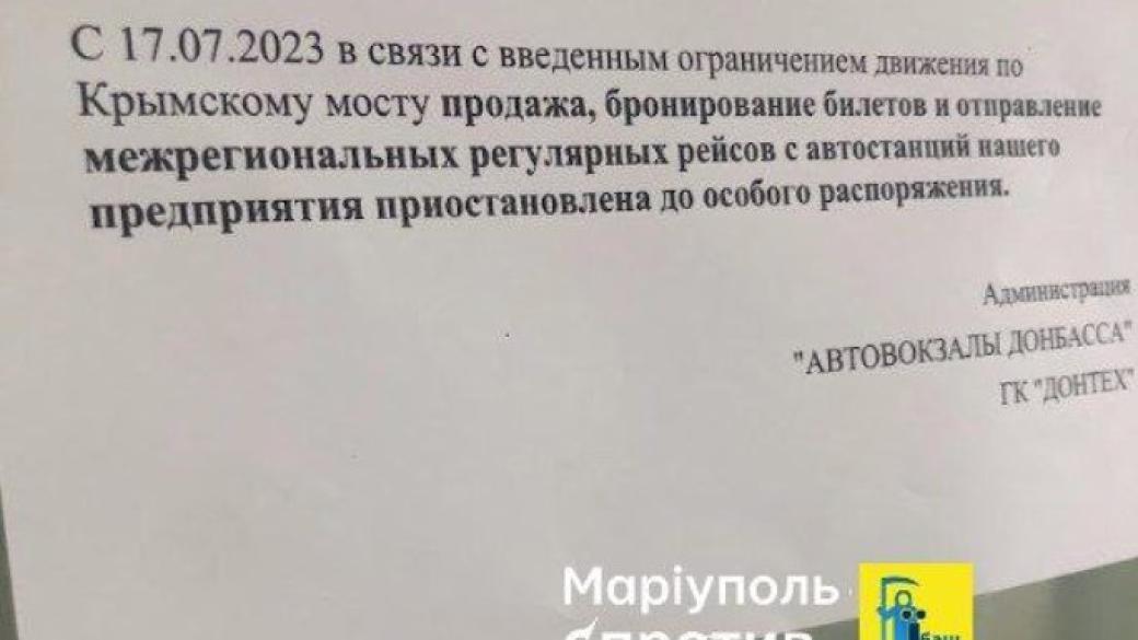 На автовокзалах временно оккупированных районов Донетчины приостановили бронирование и продажа билетов для межрегионального сообщения. Соответствующее решение коллаборанты приняли с началом наплыва россиян, бежавших из Крыма после взрыва на крымском мосту.