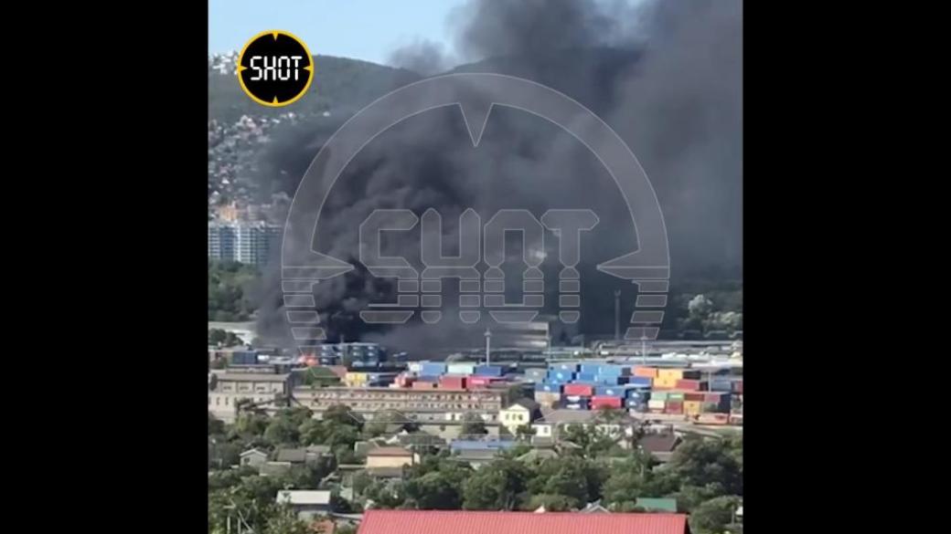 В грузовом терминале порта Новороссийска возник большой пожар.