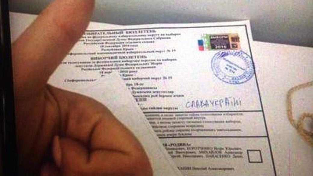 Журналист Артем Шевченко, возглавляющий пресс-службу МВД, предъявил доказательство тог, что не все крымчане поддерживают российских оккупантов. Он выставил фото, на котором четко видно, как на бюллетене избиратель сделал надпись «Слава Украине!»