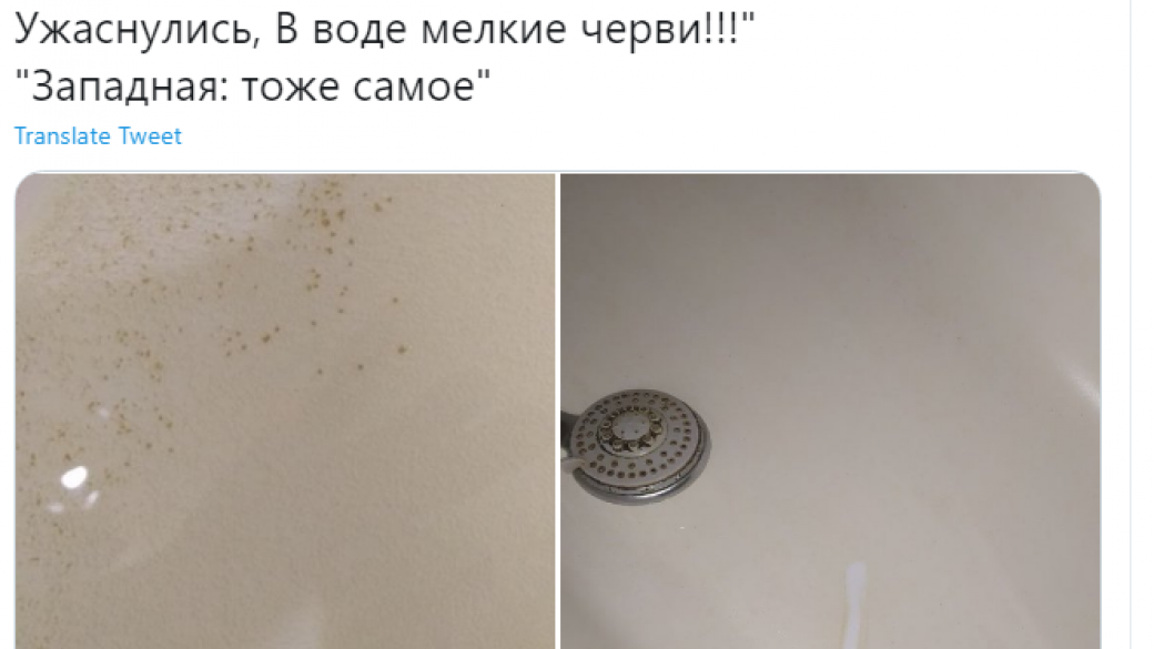«Мясснаб „Макеевка. Восточный. Набрали в ванну воды. Ужаснулись, В воде мелкие черви!!!“ „Западная: тоже самое“».