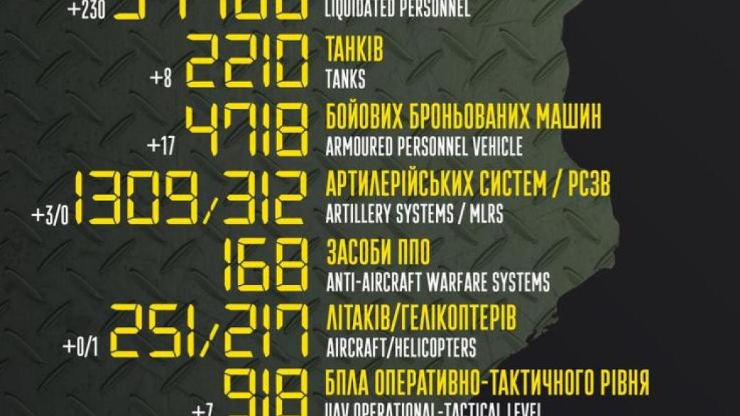 При этом общие боевые потери противника с 24.02 по 18.09 ориентировочно составили%