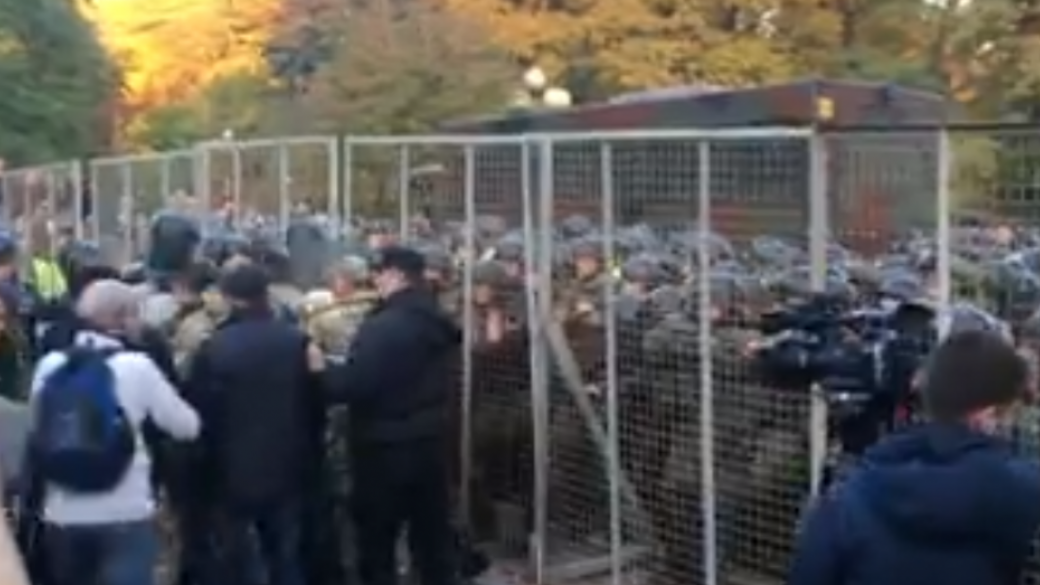 Под Радой между протестующими с силовиками произошла потасовка