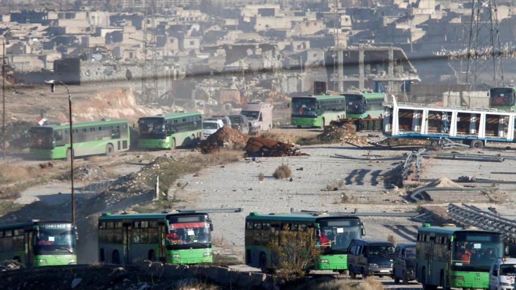 Для продолжения эвакуации гражданских и повстанцев с восточной части сирийского Алеппо в районы дислокации людей в воскресенье, 18 декабря, начинают прибывать автобусы.